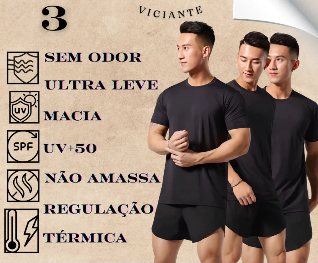 Renove seu guarda-roupa com o Kit com 3 Camisetas Modal Tech, uma escolha inteligente para quem não abre mão de conforto e praticidade.